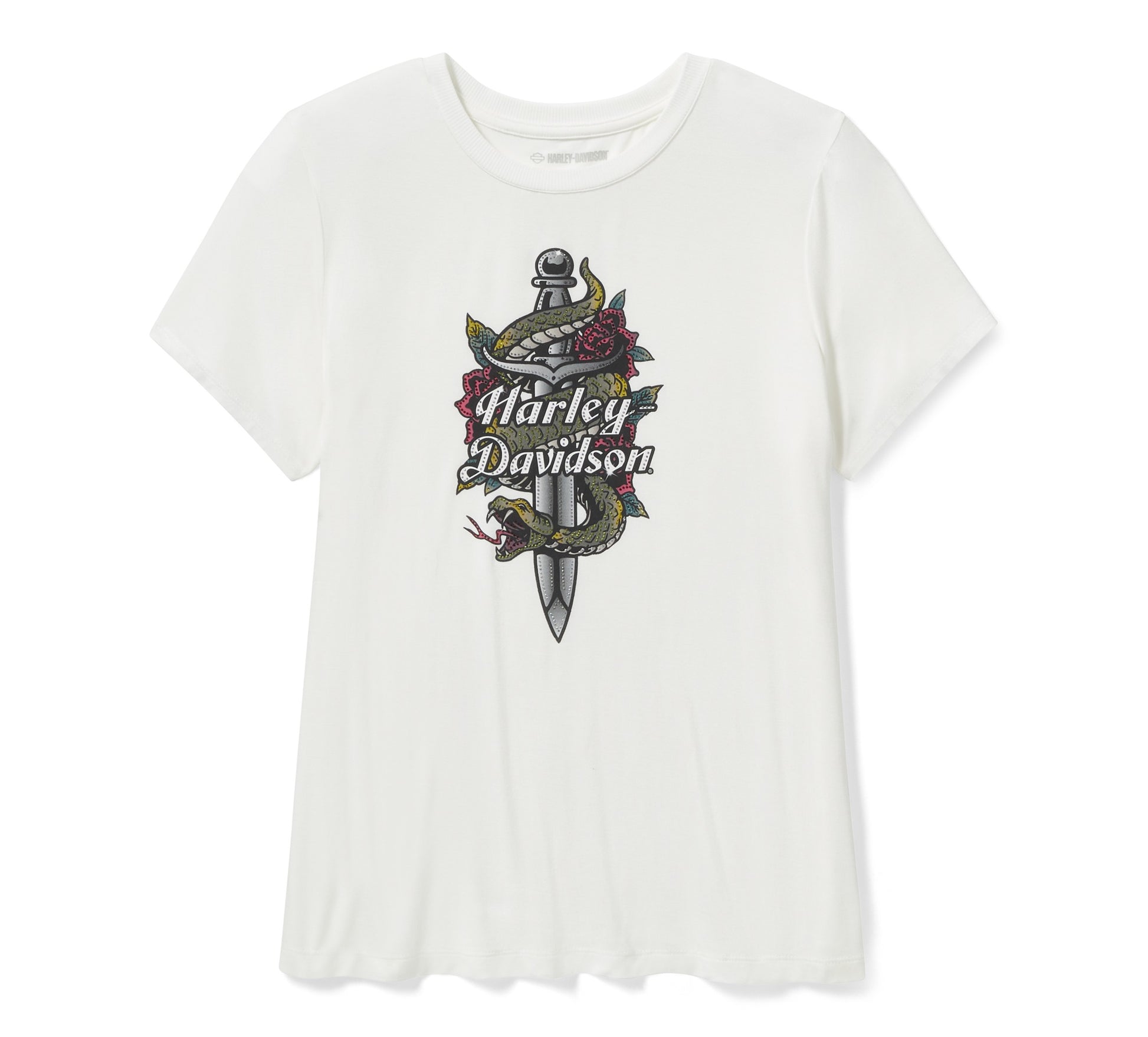 H-D SERPENT ROSE BLING CREW NECK TEE