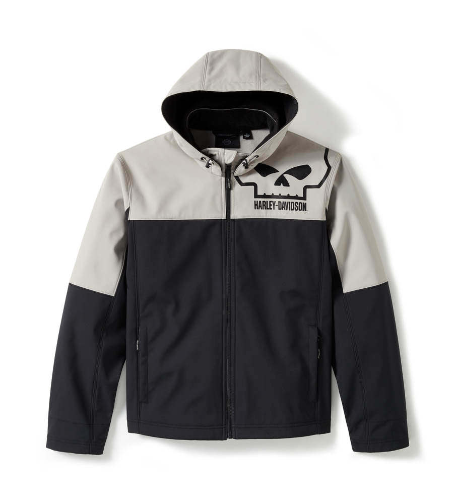 Stay warm and dry as you honor a creative legacy in the Willie G™ Skull Water Repellent Softshell Jacket. Made with water-repellent and windproof materials, it’s an ideal men’s outerwear pick for when the weather takes a nasty turn. It also features zip-closed pockets for securing essentials, a removable hood with toggle cord, and reflective graphics to enhance visibility. Its colourblock style is boldly branded on both sides with the fearless Willie G Skull. Know the history—though the Skull is one of his most popular creations, Willie G. Davidson also designed several motorcycles, including the 1971 FX Super Glide® and the 1977 FXS Low Rider®. Order yours while supplies last.